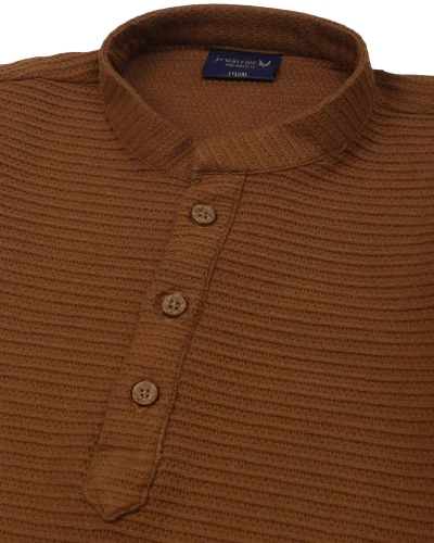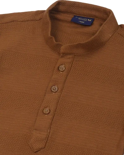 Warrior Kid’s Brown Textured Cotton Mandarin Collar Kurta