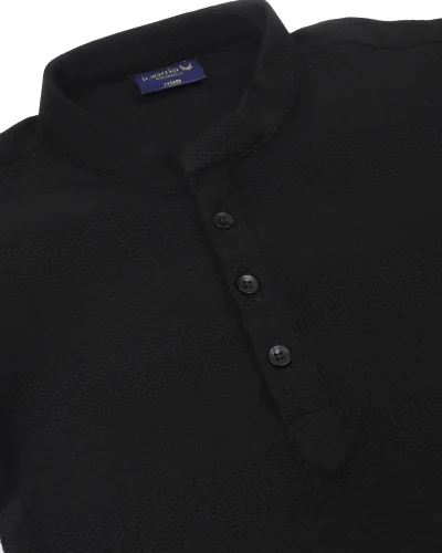 Warrior Kid’s Black Textured Cotton Mandarin Collar Kurta