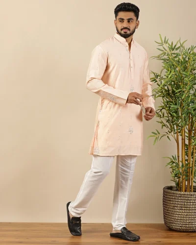 Maurya Vastra Boys Peach Textured Festive Kurta