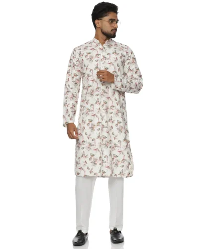 Maurya Vastra Ivory Garden Printed Kurta