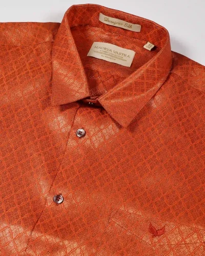 Maurya Vastra Burnt Orange Textured Brocade Designer Shirt