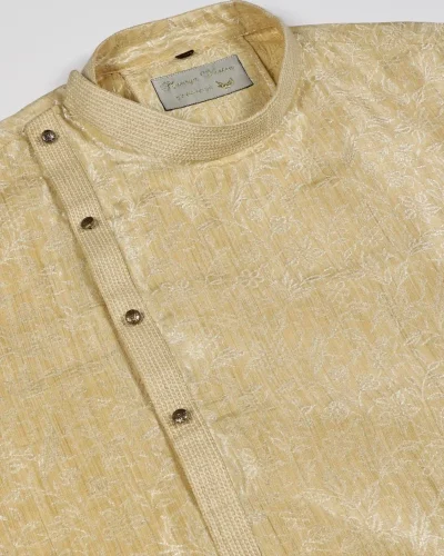 Maurya vastra Golden Beige Textured Mandarin Collar Designer Kurta