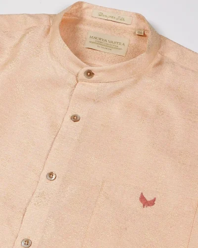 Warrior Peach Gold Textured Mandarin Collar Shirt
