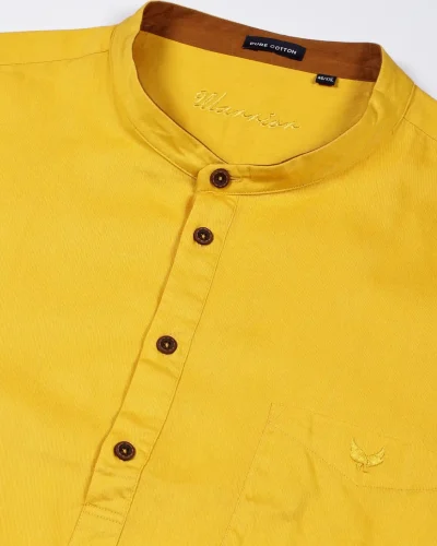 Warrior Mustard Yellow Cotton Mandarin Collar Urban Kurta