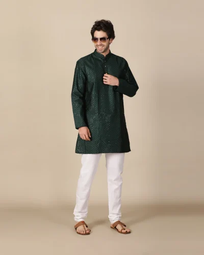 Bottle Green Sequin Short Kurta