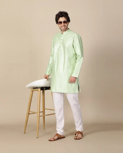 Maurya Vastra Pistachio Green Designer Silk Brocade Kurta