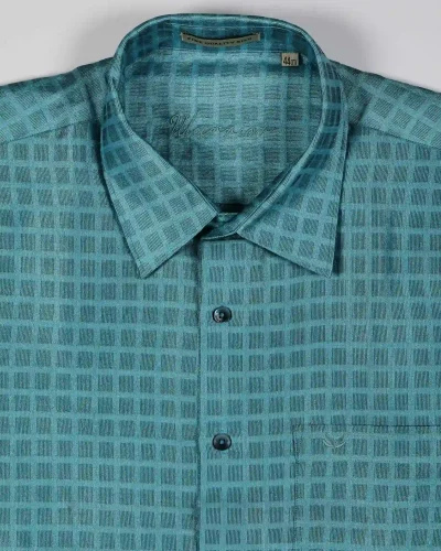 Warrior Teal Green Textured Formal Full Sleeve Shirt