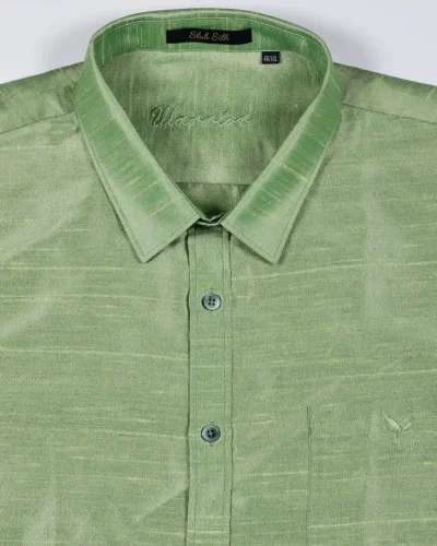 Warrior Mint Green Slub Silk Classic Half Sleeve Shirt