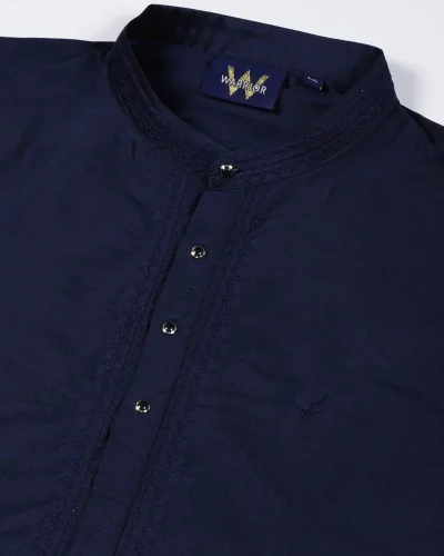 Warrior Navy Blue Yoke Embroidered Short Kurta