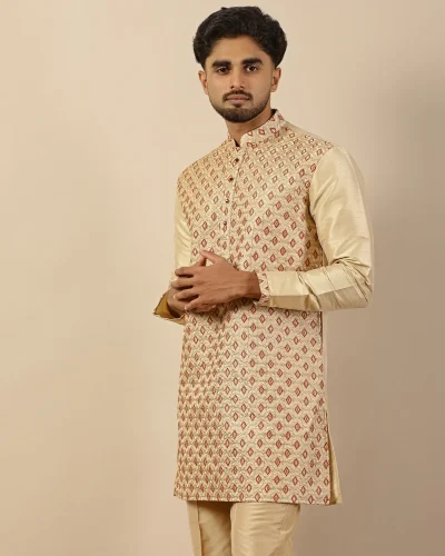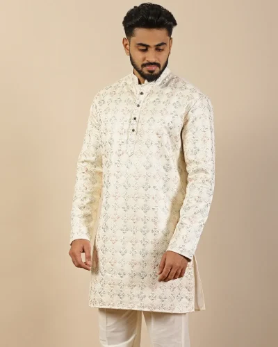 Ivory Embroidered Silk Short Kurta