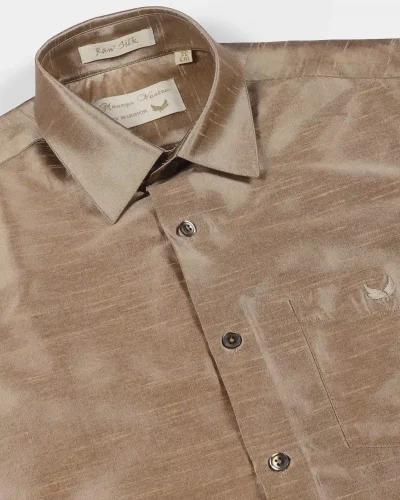 Maurya Vastra Champagne Beige Raw Silk Classic Shirt