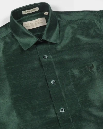 Maurya Vastra Deep Forest Green Raw Silk Classic Shirt