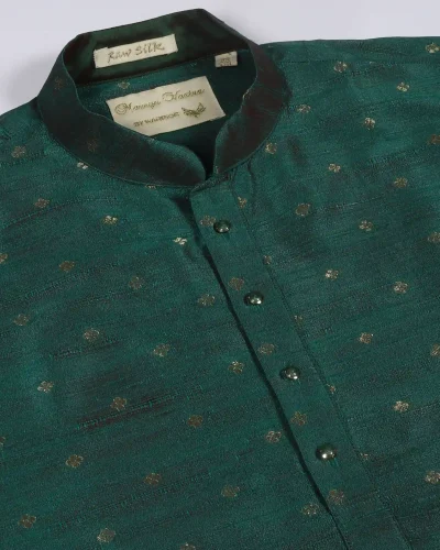 Maurya Vastra Emerald Green Raw Silk Buti Brocade Kurta