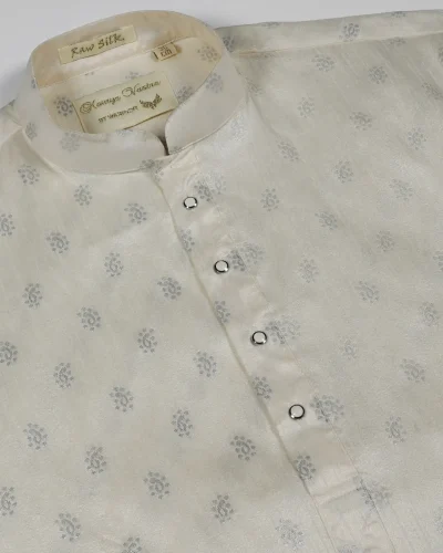 Maurya Vastra Ivory Raw Silk Buti Brocade Kurta
