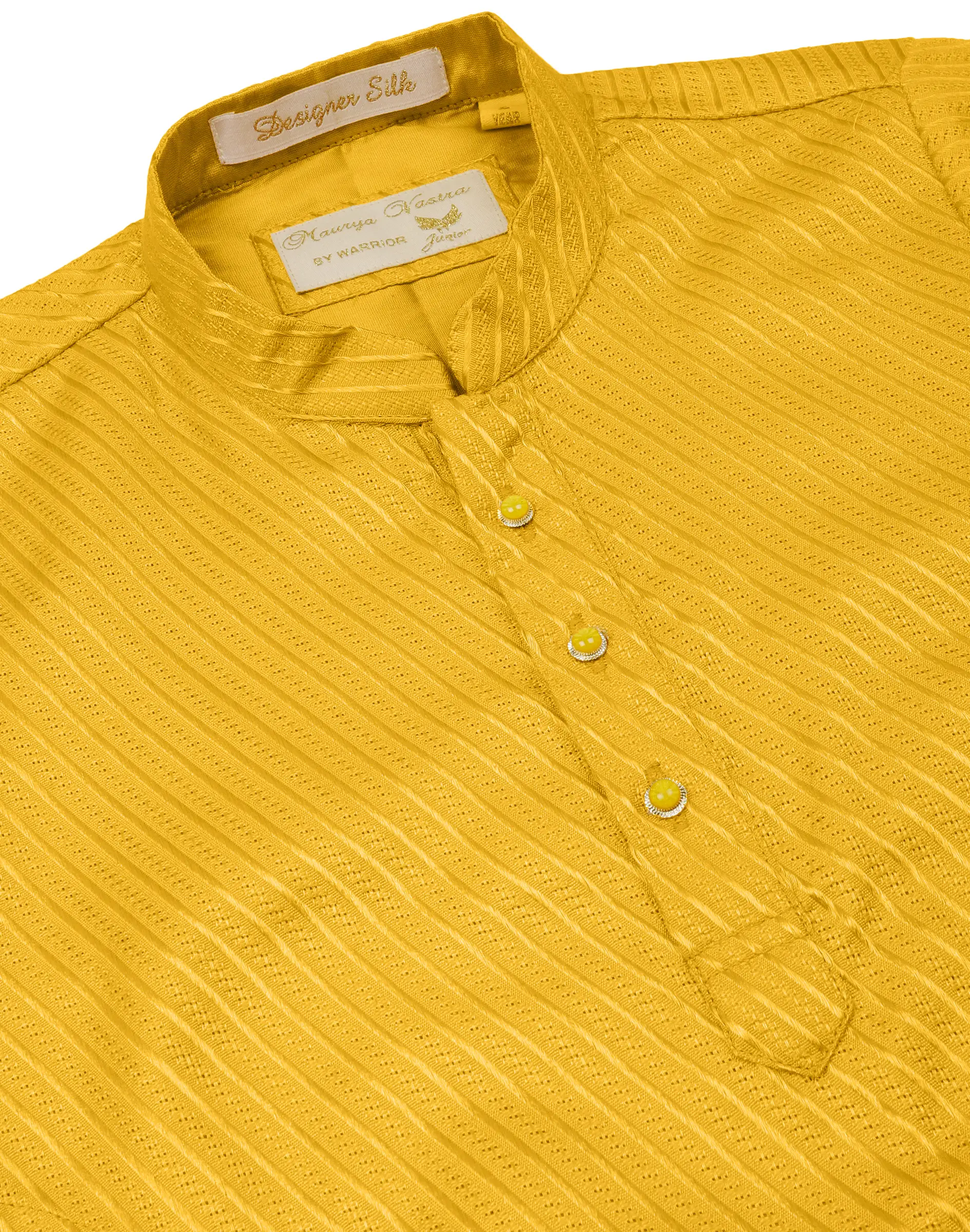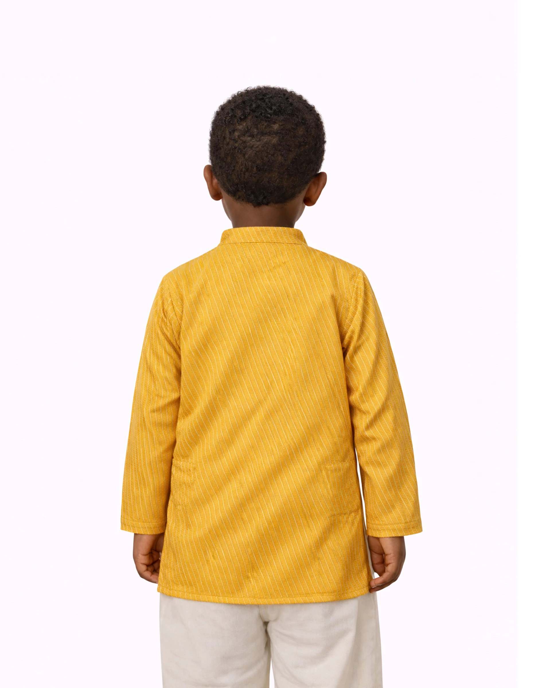 A vibrant mustard kurta with elegant textured detailing, perfect for festive celebrations and traditional occasions.