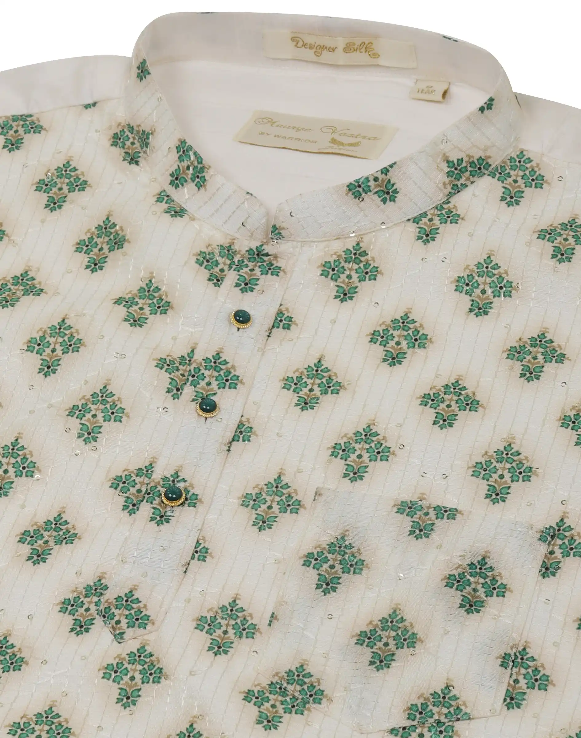 • Ivory & Green Printed Kids Festive kurta