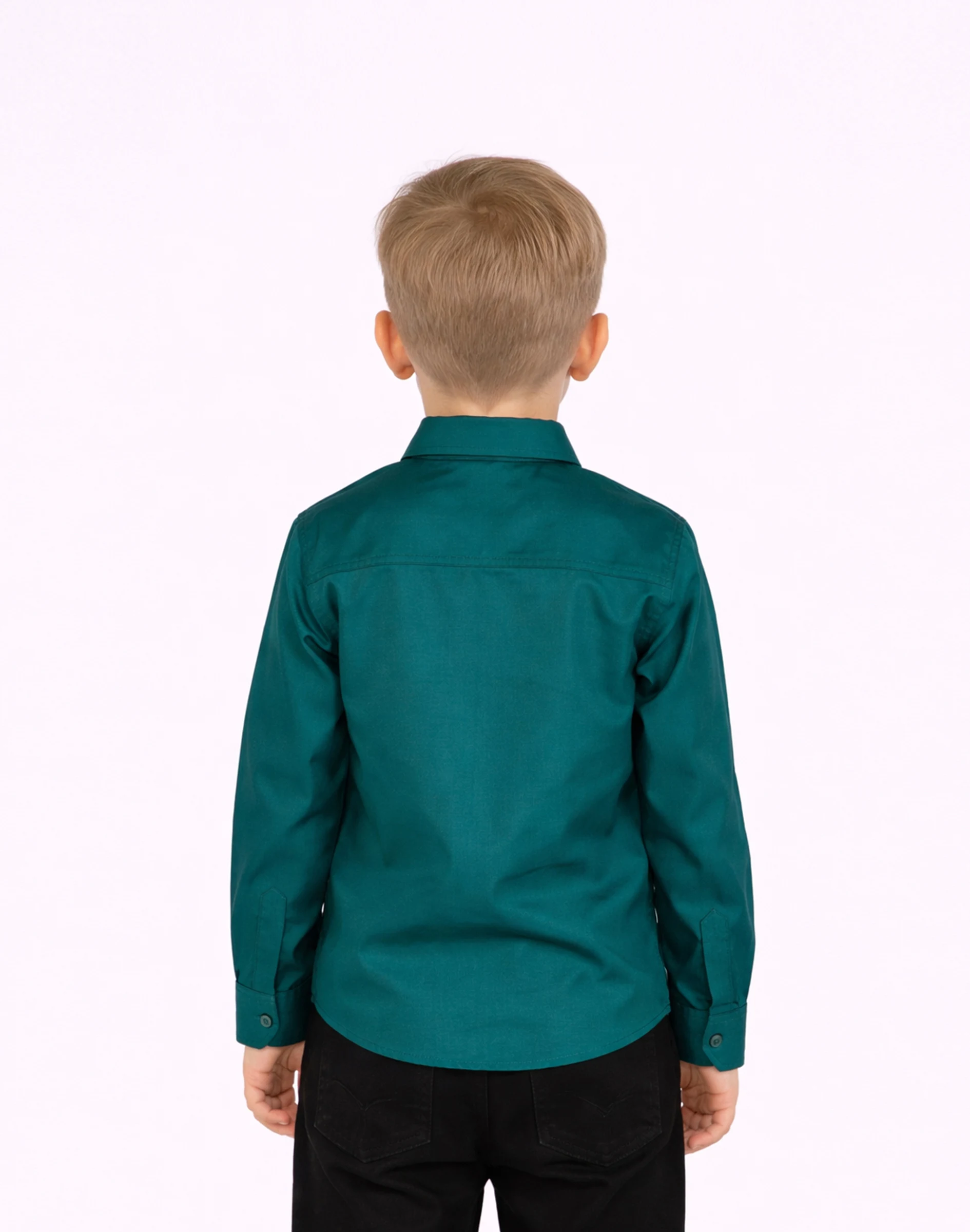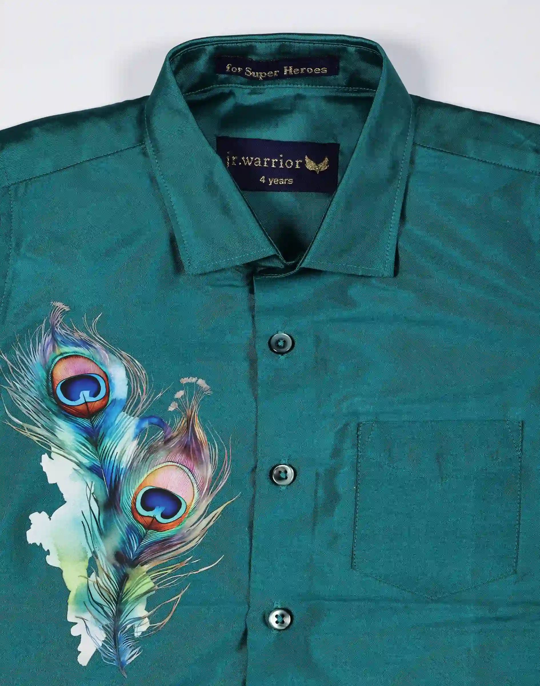 • Jr. Warrior Peacock Feather Print Art Silk Shirt – Teal Green