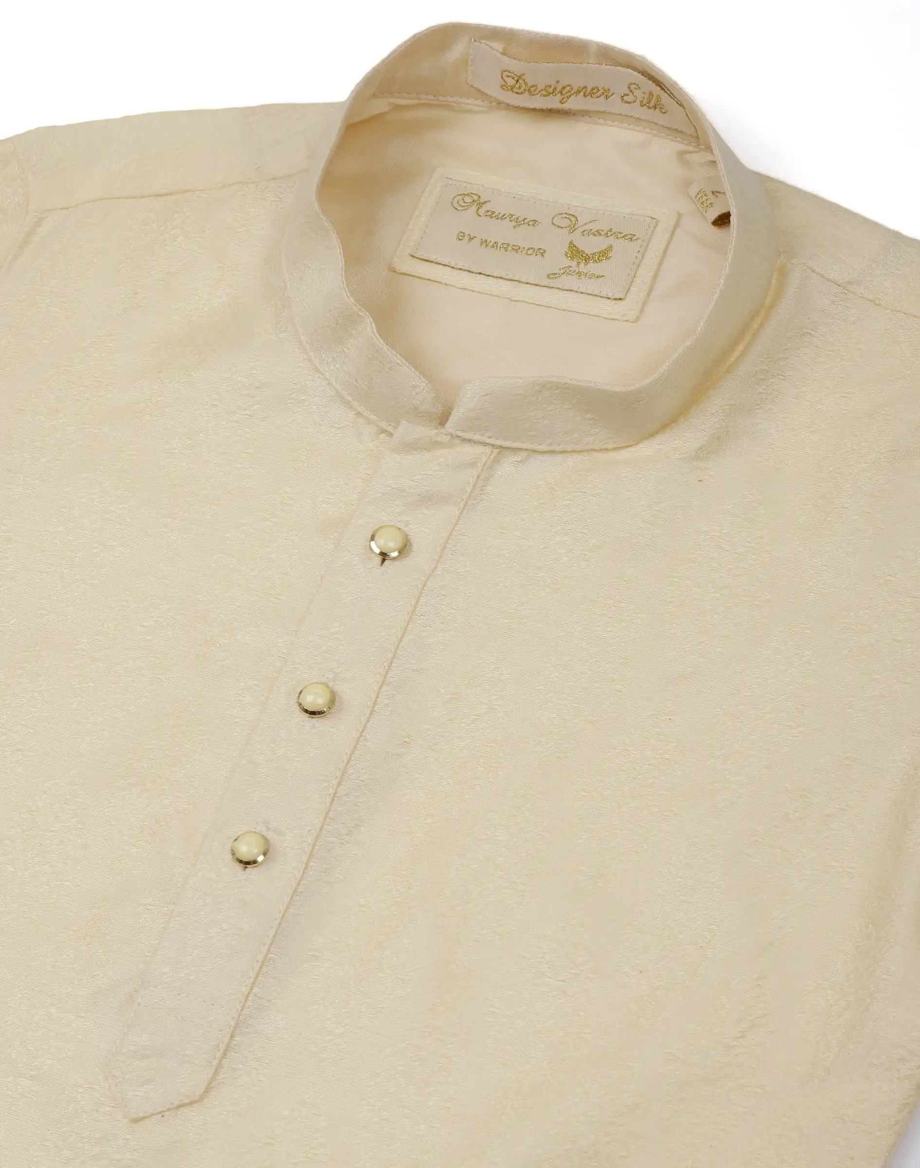 Maurya Vastra Boys Cream Diamond Weave Festive Kurta