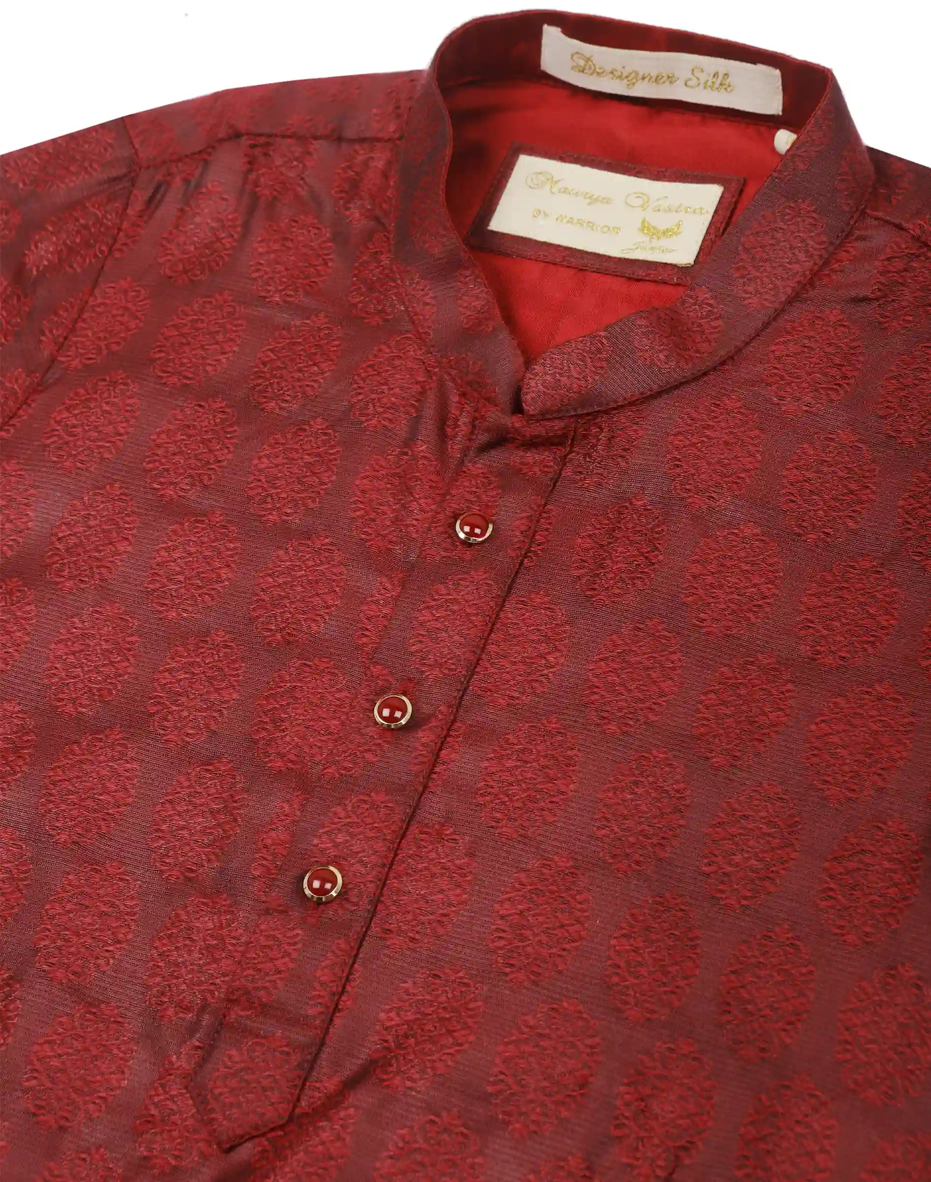Maurya Vastra Boys Maroon Jacquard Festive Kurta
