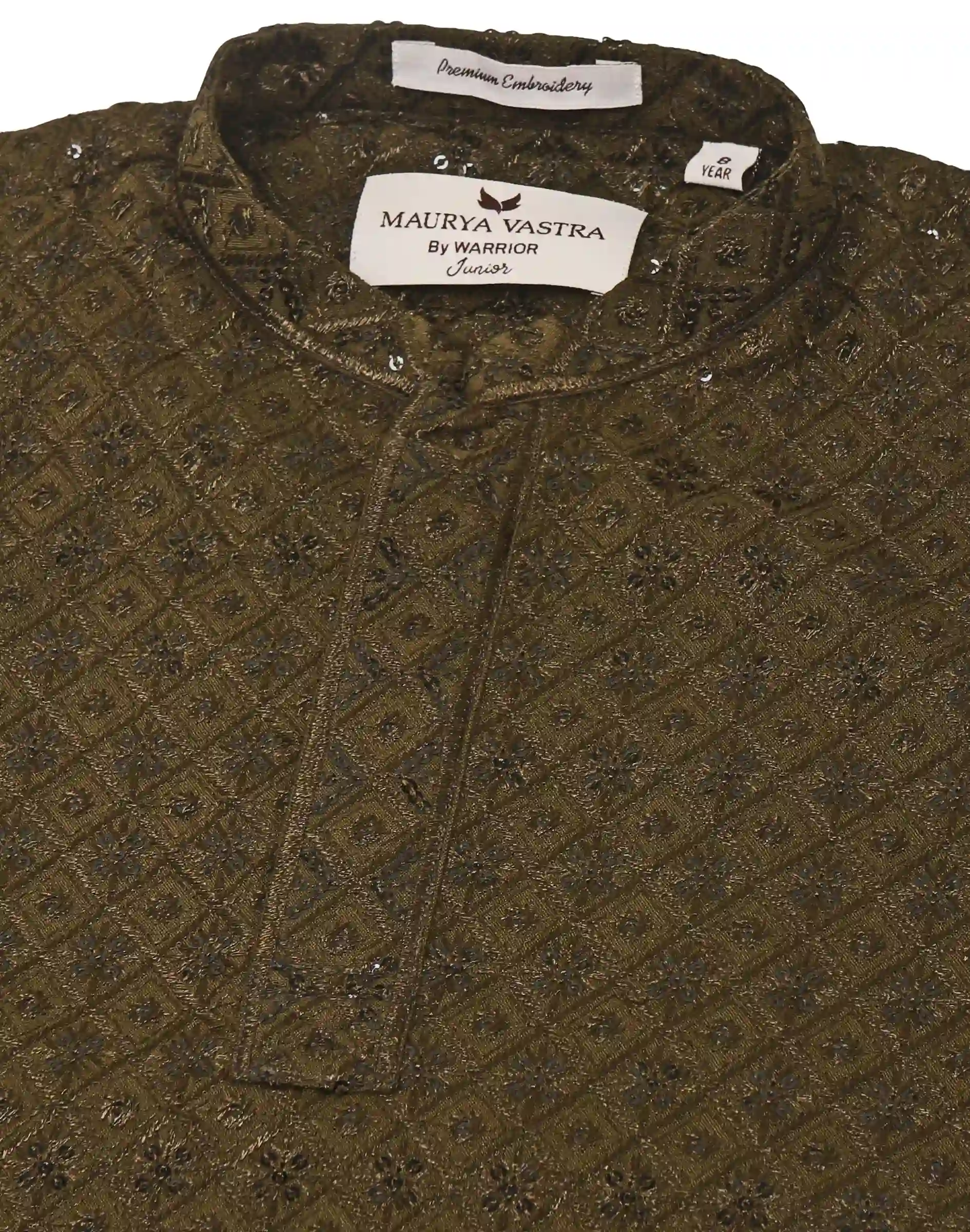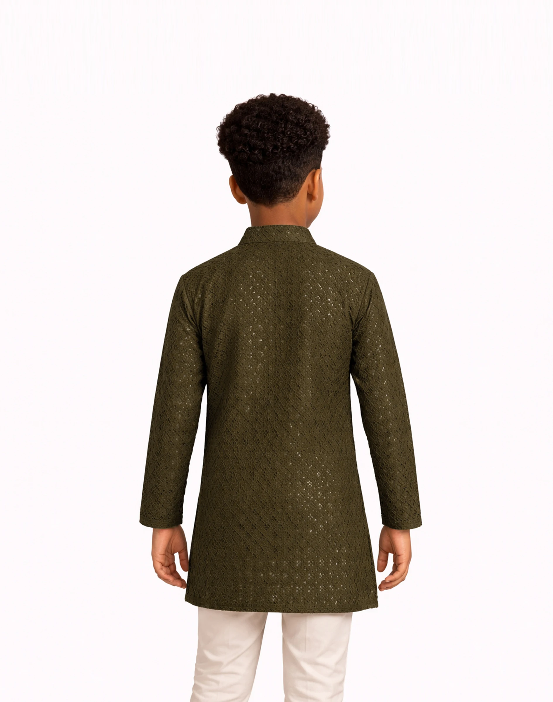• Maurya Vastra Boys Olive Green Chikankari Kurta