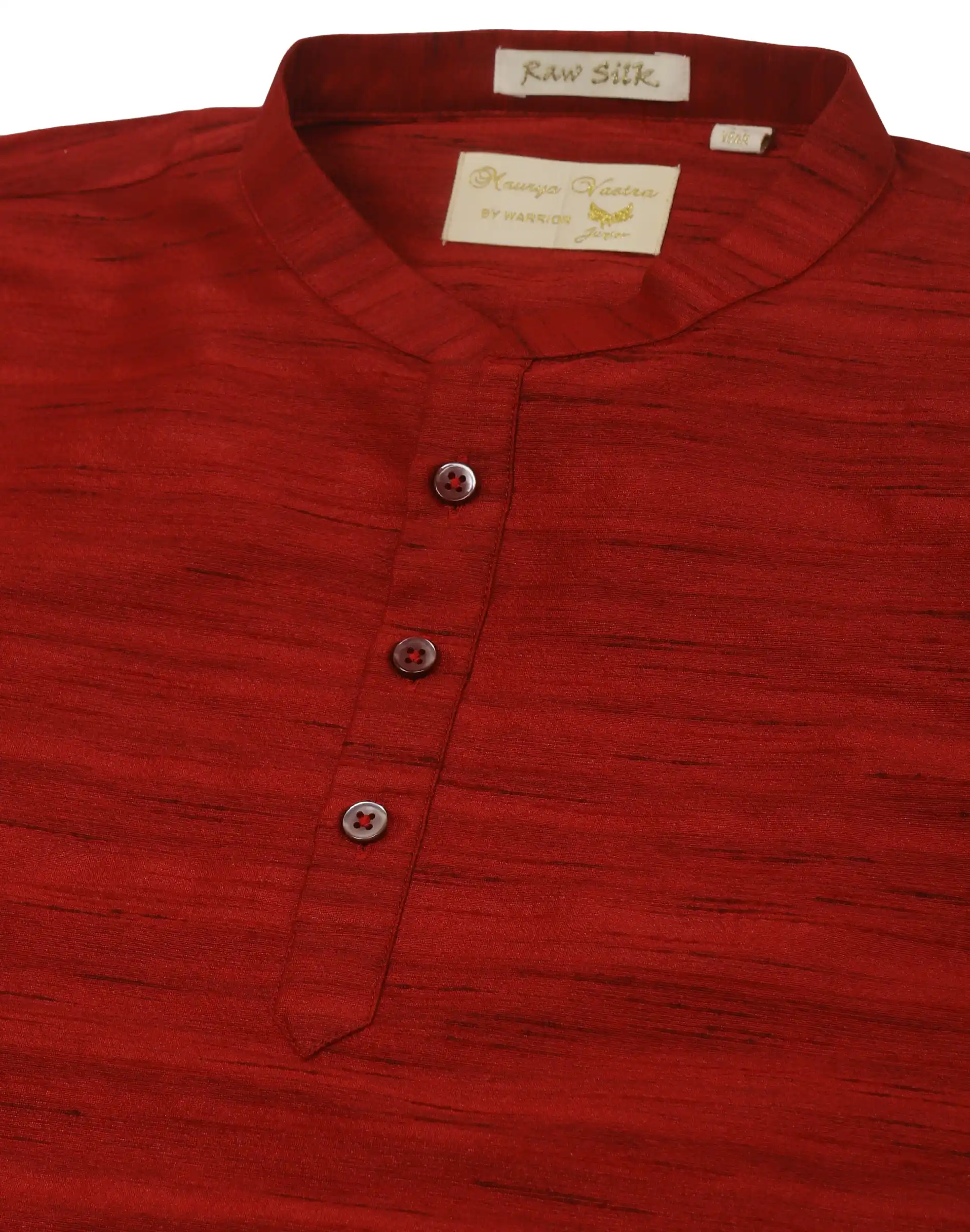 • Maurya Vastra Boys Red Raw Silk Festive Kurta