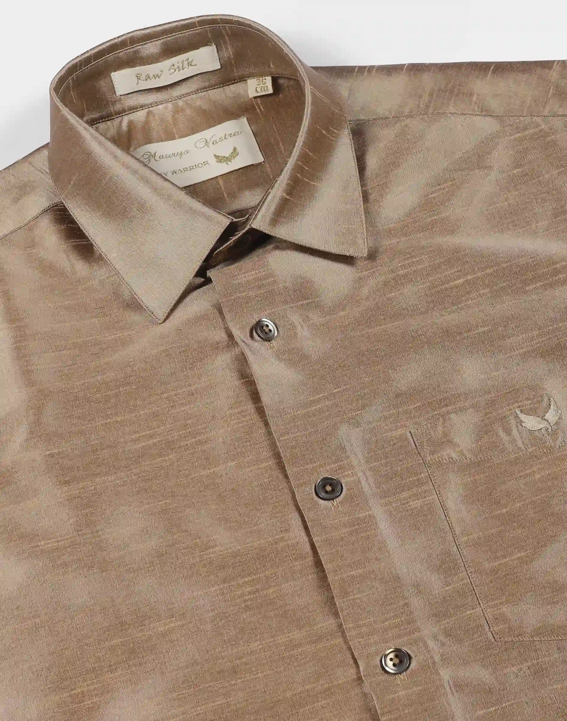 Maurya Vastra Champagne Beige Raw Silk Classic Shirt