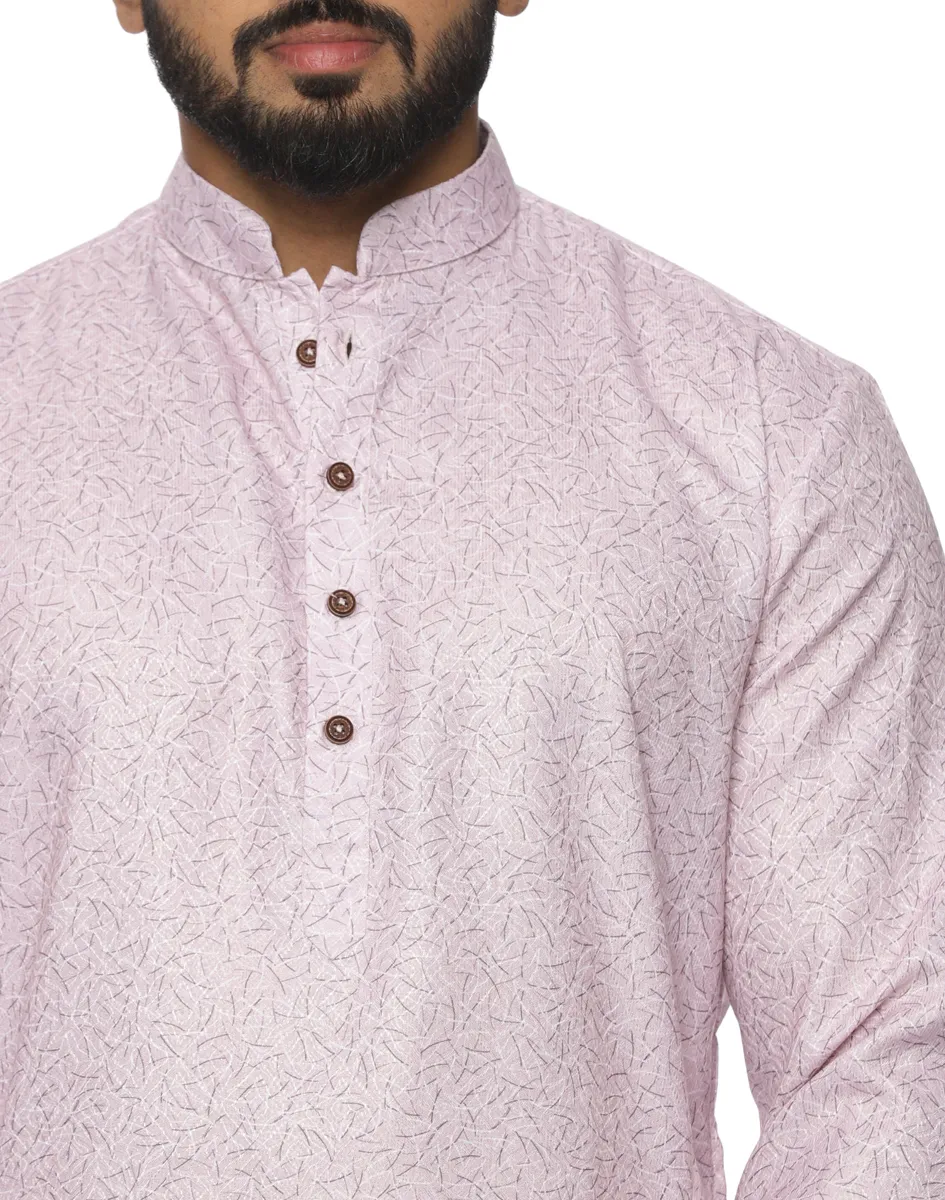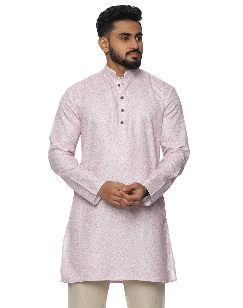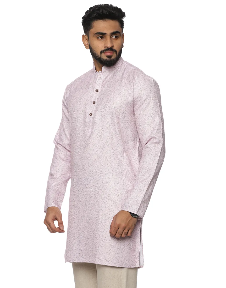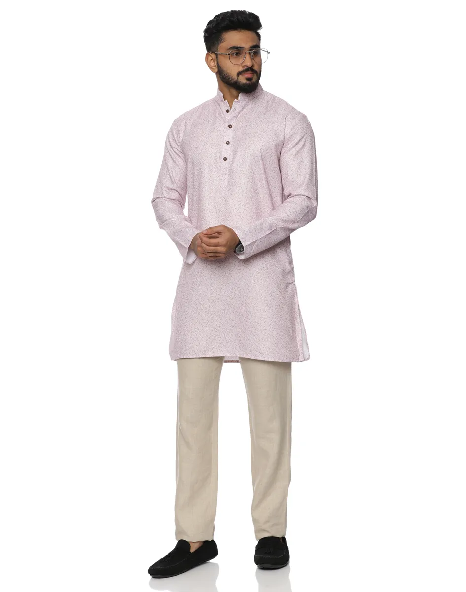 This kurta from Maurya Vastra is crafted from premium cotton fabric, this kurta offers a breathable, lightweight feel with a refined surface texture that adds quiet depth to its design. The soft blush tone exudes understated luxury, making it an ideal choice for daytime festivities and elevated everyday wear.