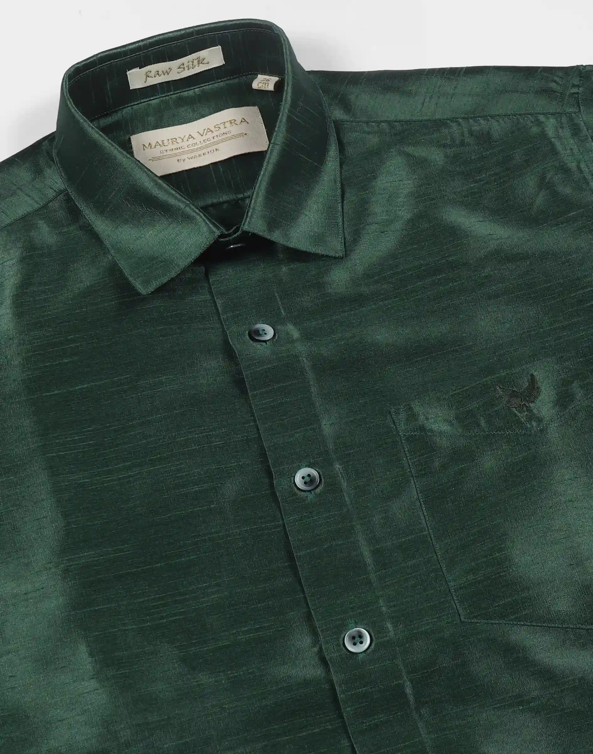 • Maurya Vastra Deep Forest Green Raw Silk Classic Shirt