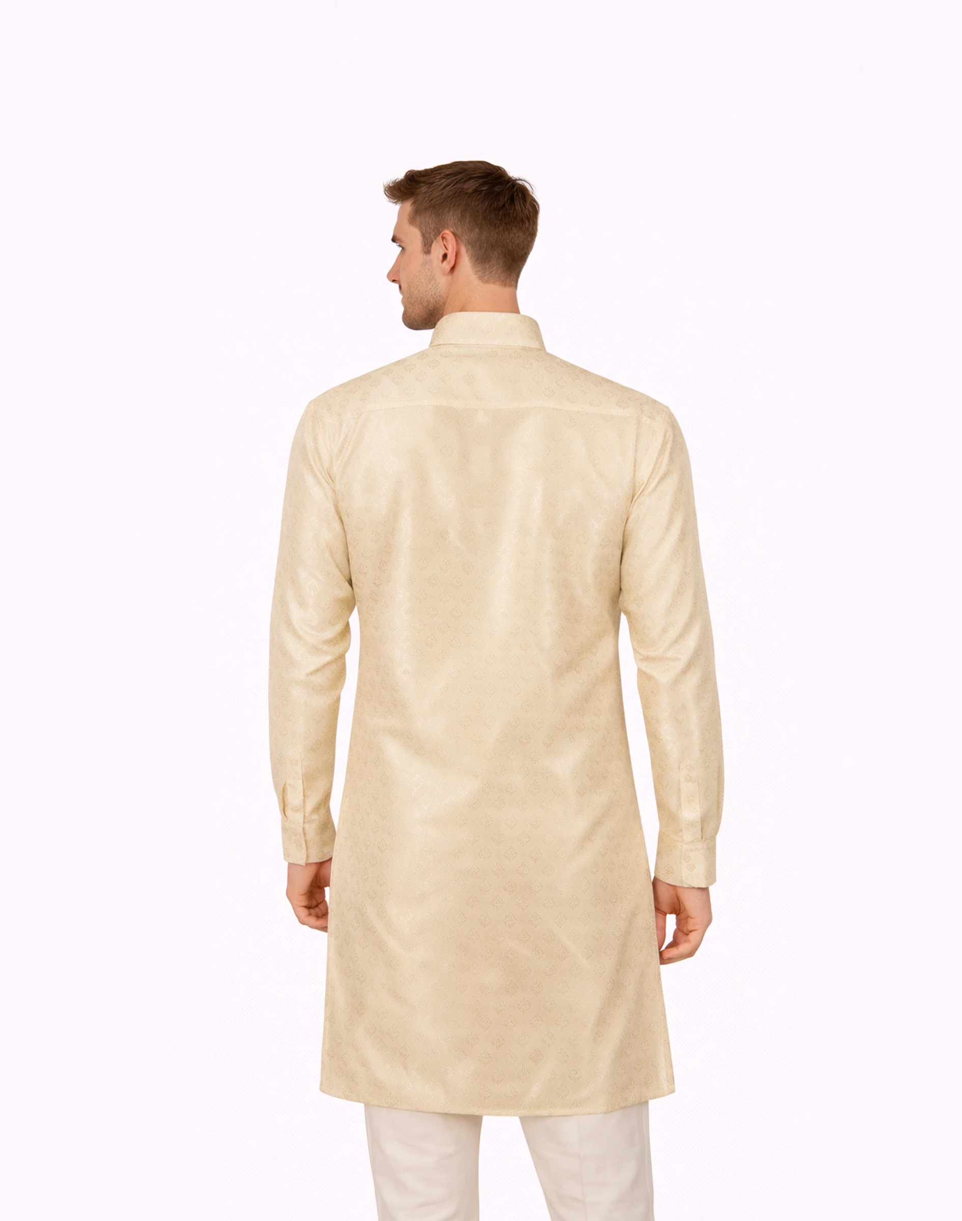 A refined ivory kurta set crafted with subtle jacquard detailing, perfect for festive and occasion wear.