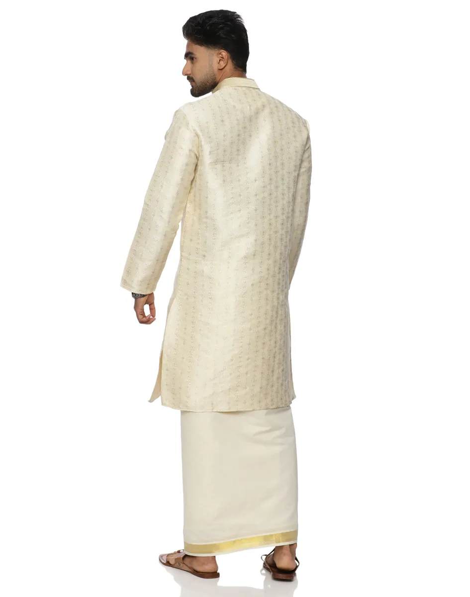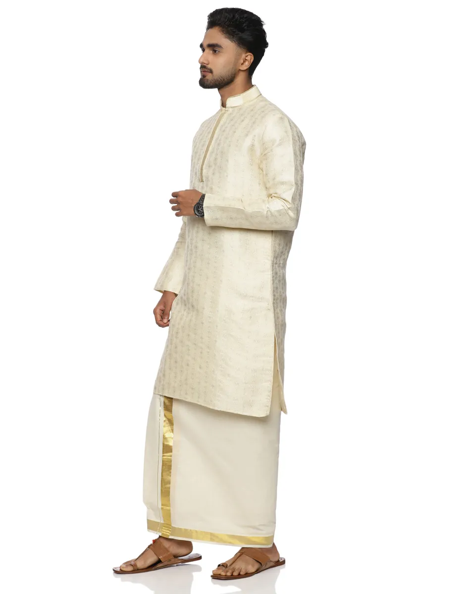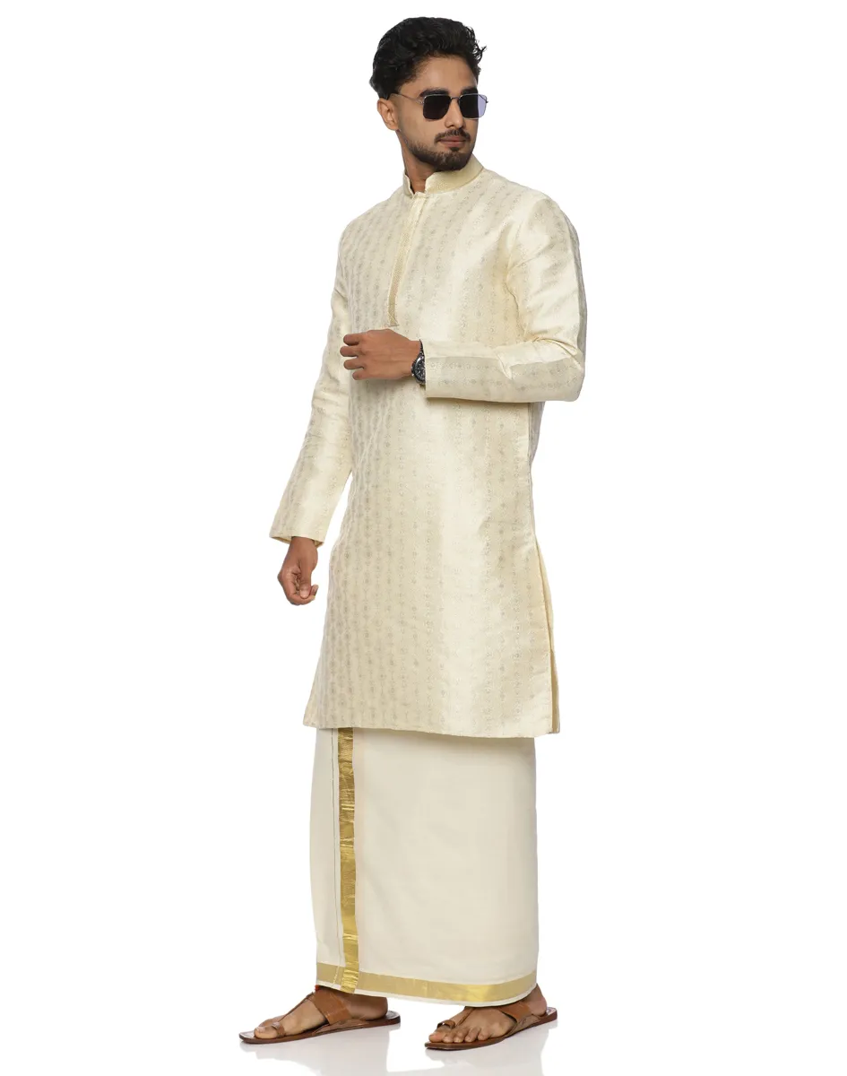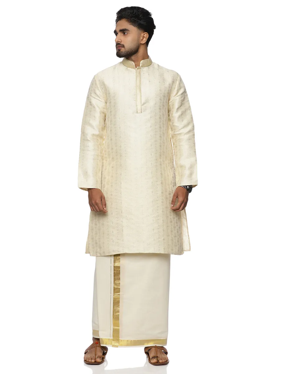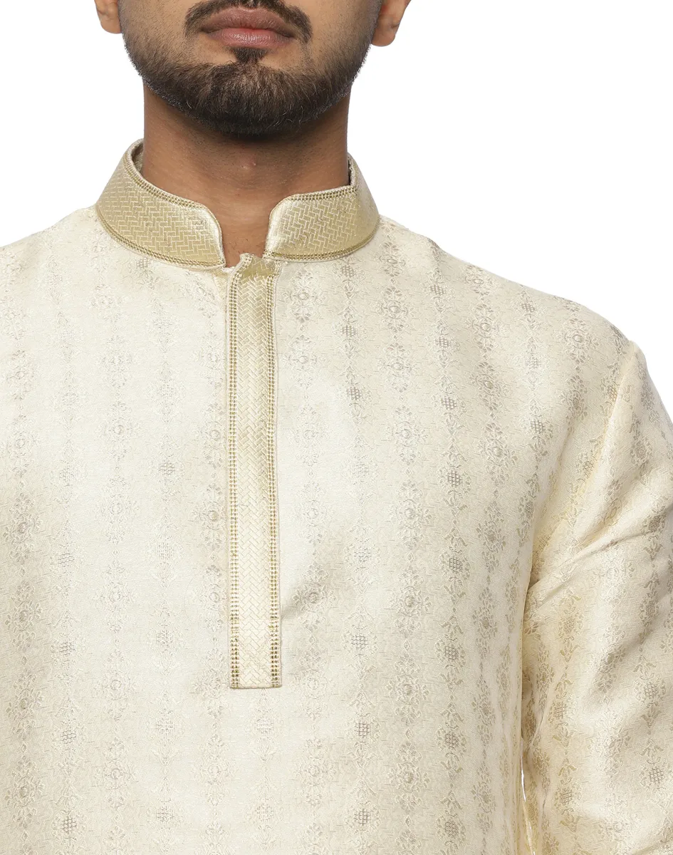 Maurya Vastra Ivory Gold Subtle Brocade Festive Kurta