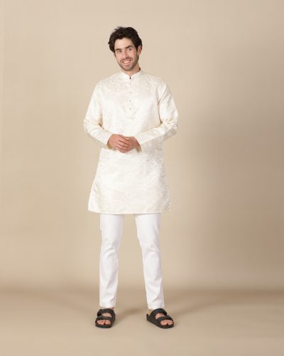 A sophisticated ecru kurta set designed to celebrate timeless tradition with refined craftsmanship.