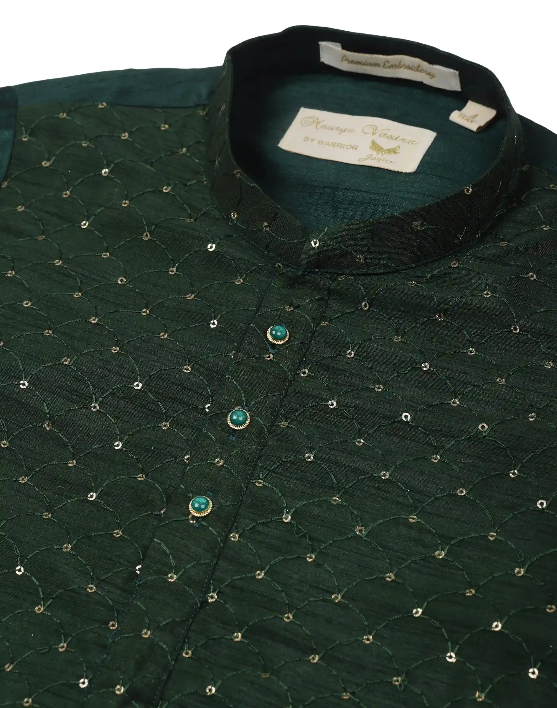 • Maurya Vastra Forest Green Embellished Boys Kurta Set