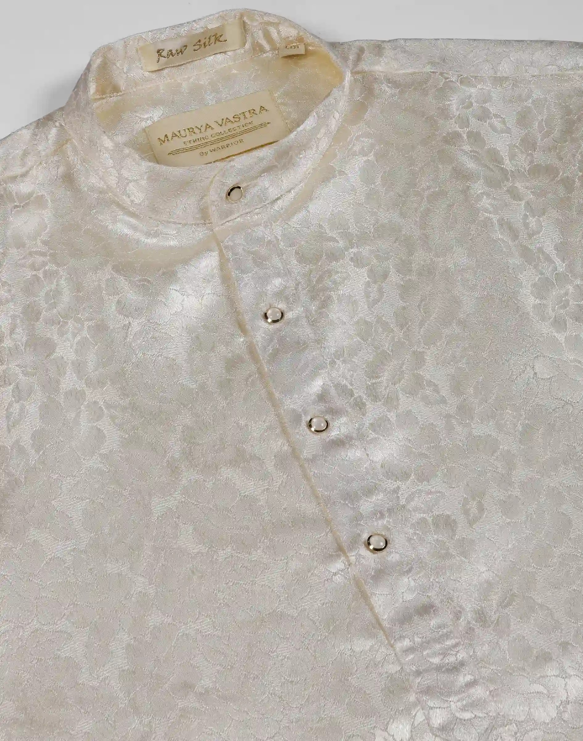 • Maurya Vastra Ivory Floral Self-Design Raw Silk Kurta