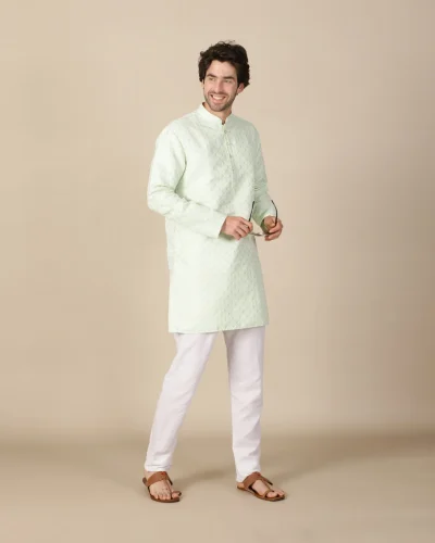 • Maurya Vastra Mint Green Textured Festive Kurta
