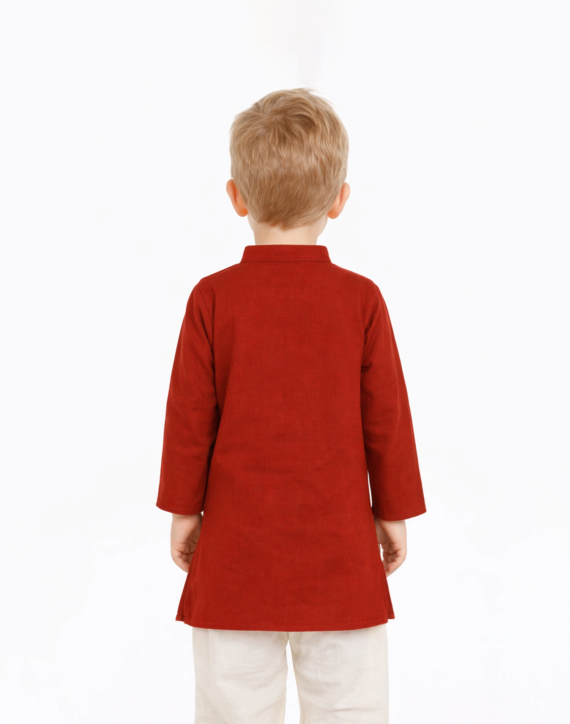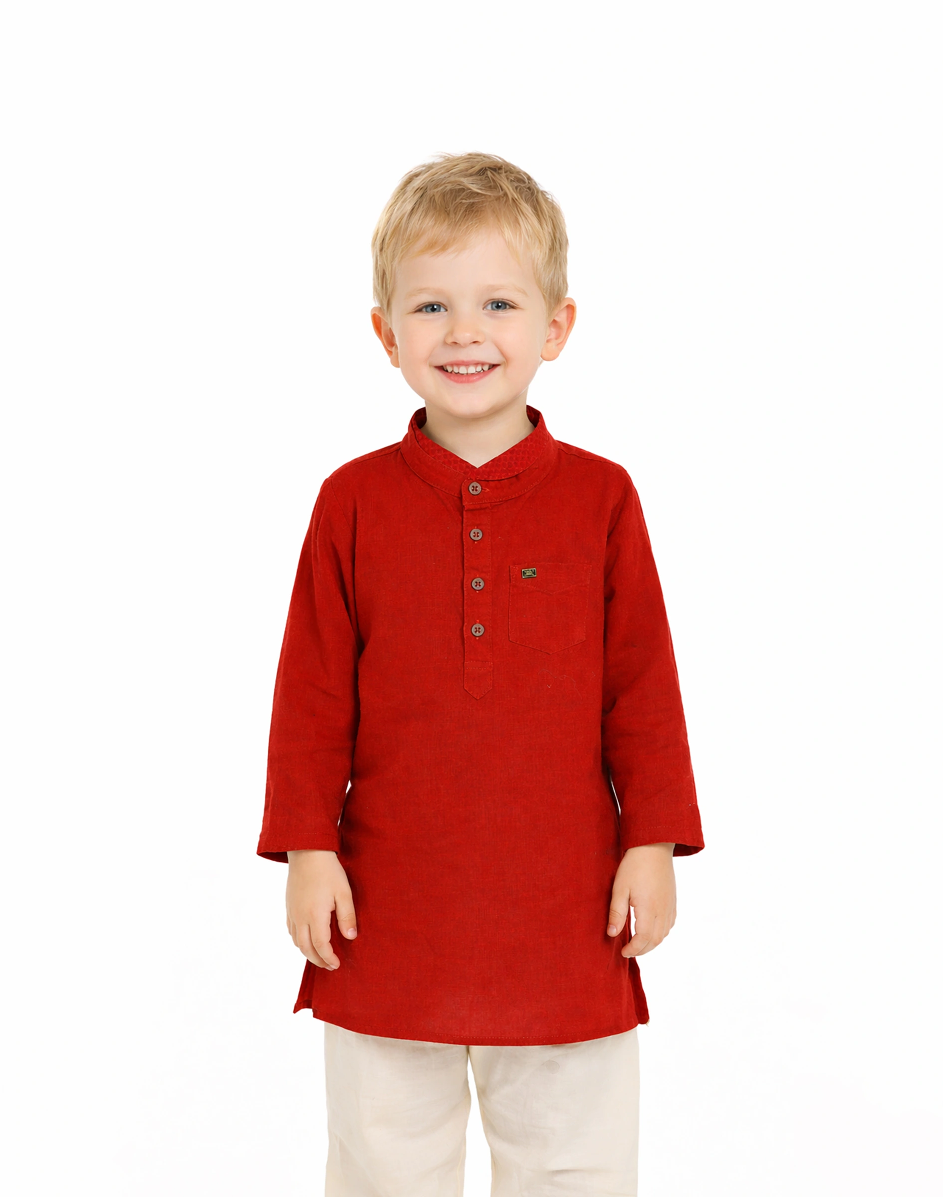 • Maurya Vastra Kid’s Classic Red Cotton Mandarin Collar Kurta
