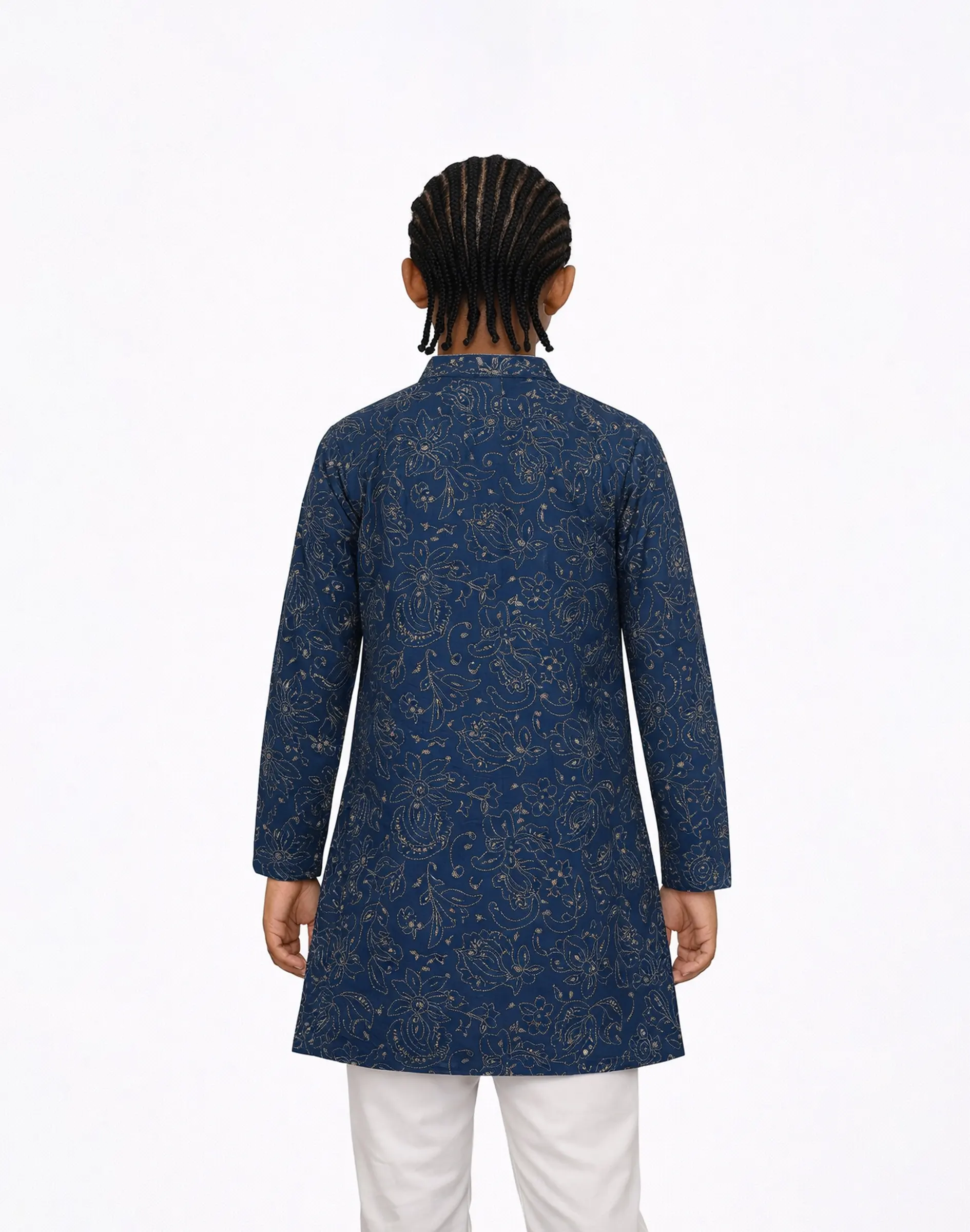 Elevate your child’s festive wardrobe with this elegant Midnight Teal Blue Brocade Kurta. Crafted from premium brocade fabric, this kurta showcases intricate woven motifs that add depth, texture, and a luxurious sheen. The mandarin collar and finely detailed placket enhance its sophisticated charm, while the deep teal tone offers a unique alternative to classic festive colors. Designed with a comfortable straight fit and full sleeves, this kurta ensures ease of movement without compromising on style. Perfect for weddings, festive celebrations, and special occasions, this piece blends tradition with modern elegance making your child stand out effortlessly.
