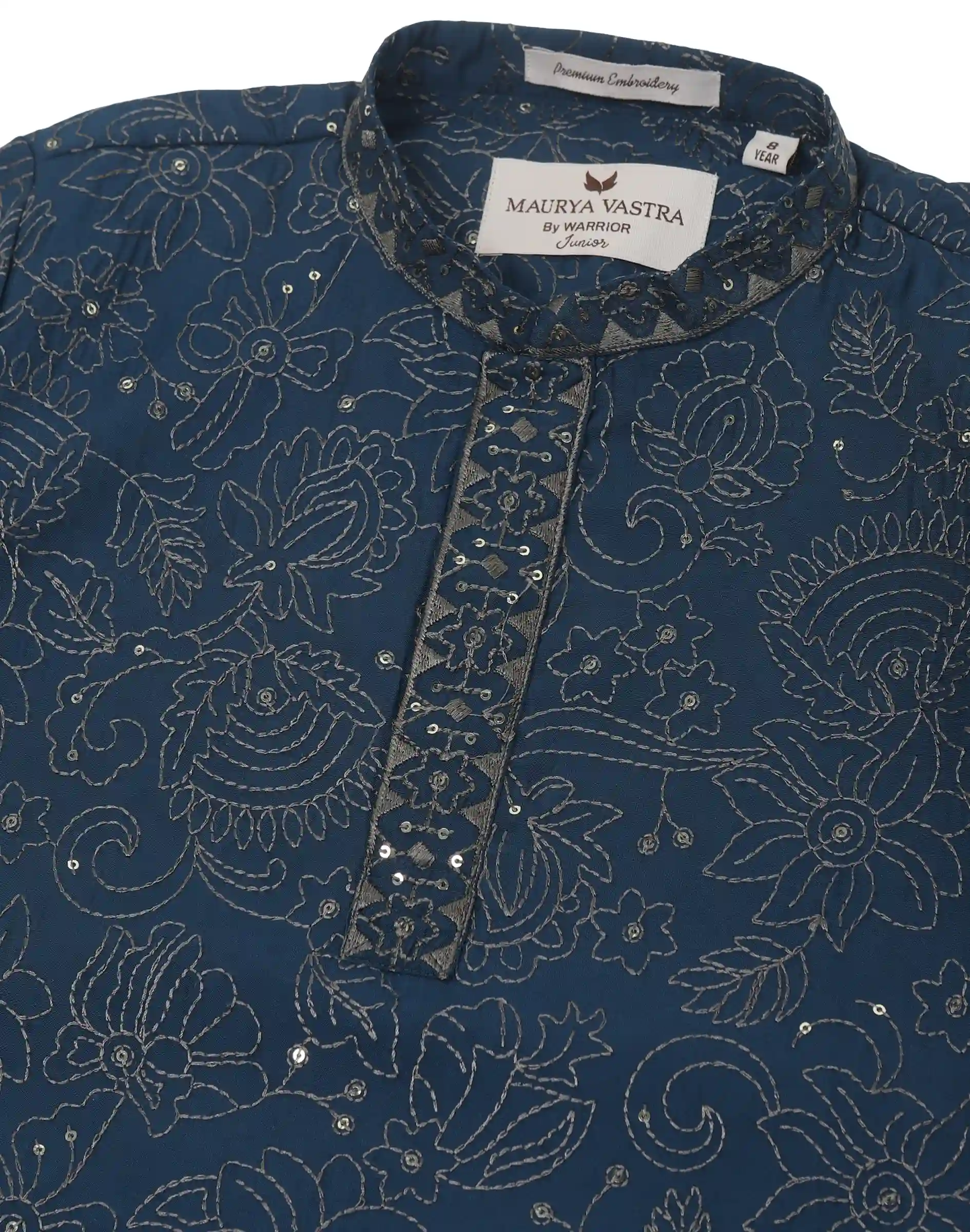 • Maurya Vastra Kid’s Midnight Teal Blue Brocade Kurta