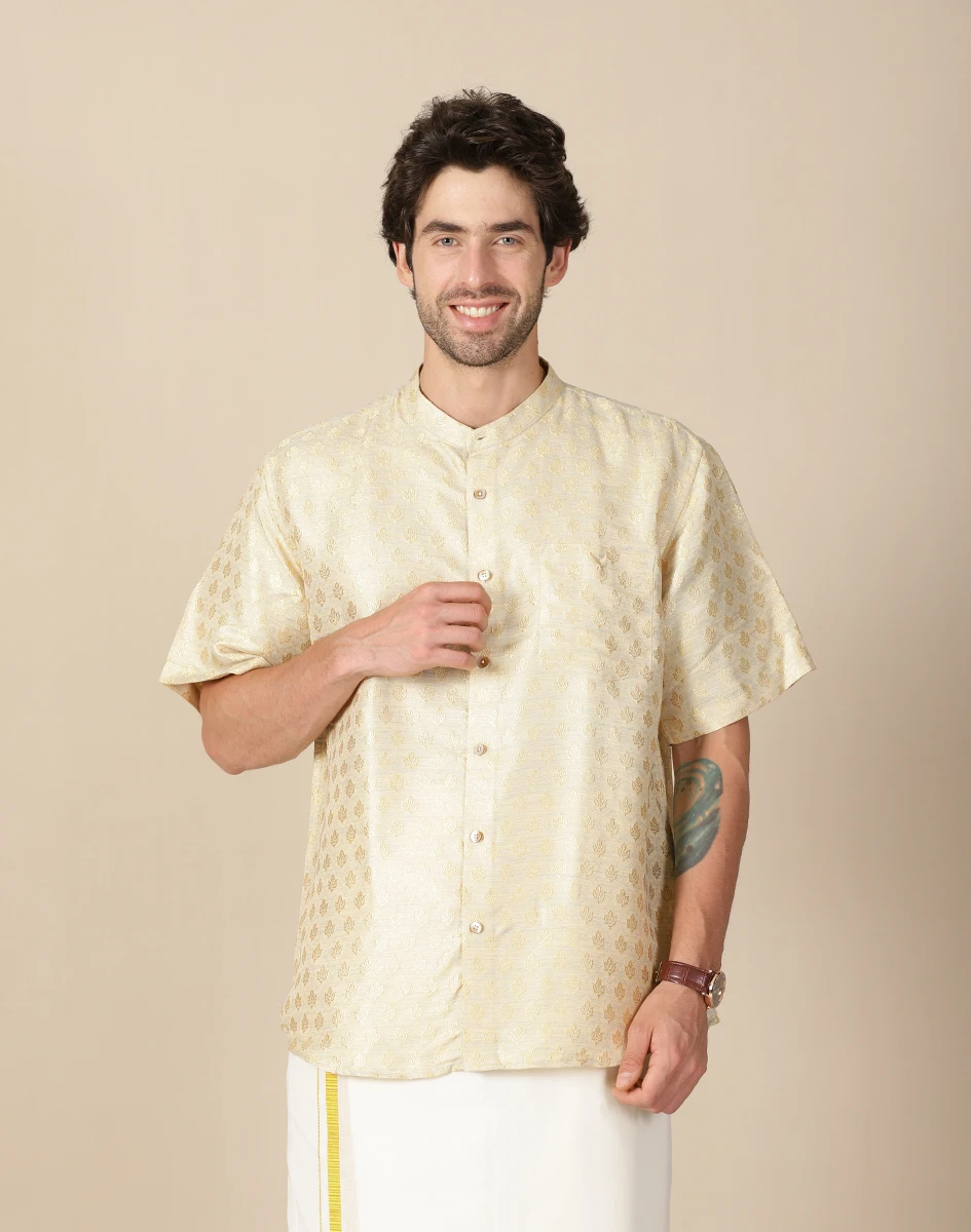 • Maurya Vastra Men’s Cream Textured Designer Silk Kurta