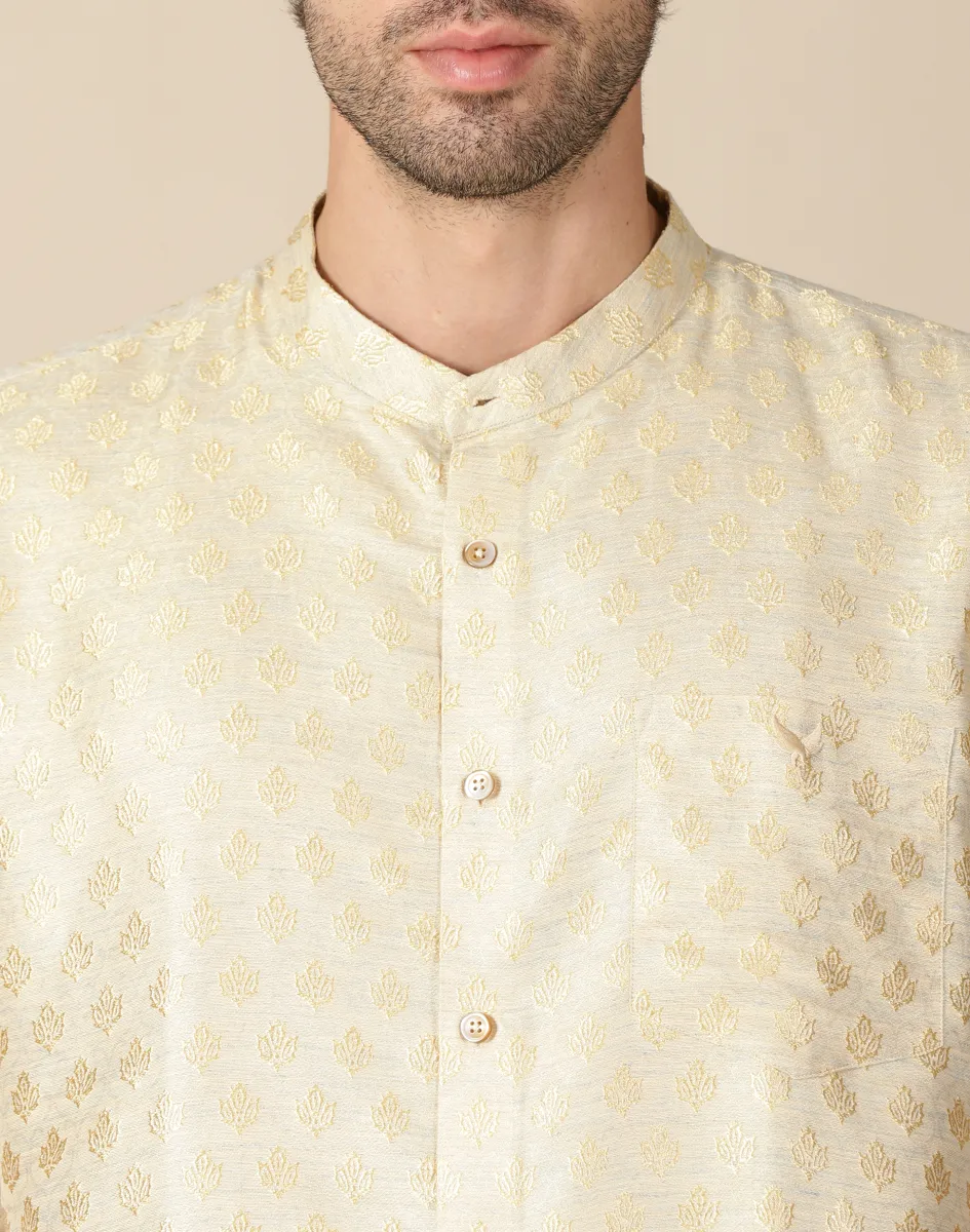 Maurya Vastra Men’s Cream Textured Designer Silk Kurta