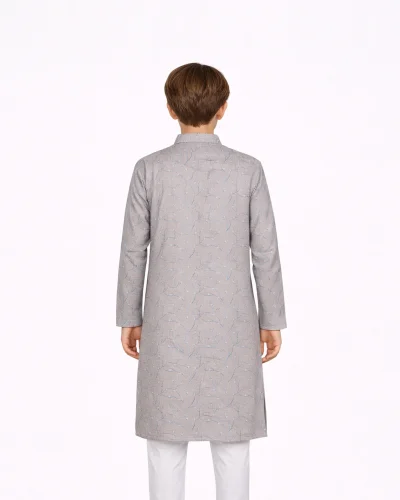 Warrior Kids Mist Grey Vine Printed Kurta