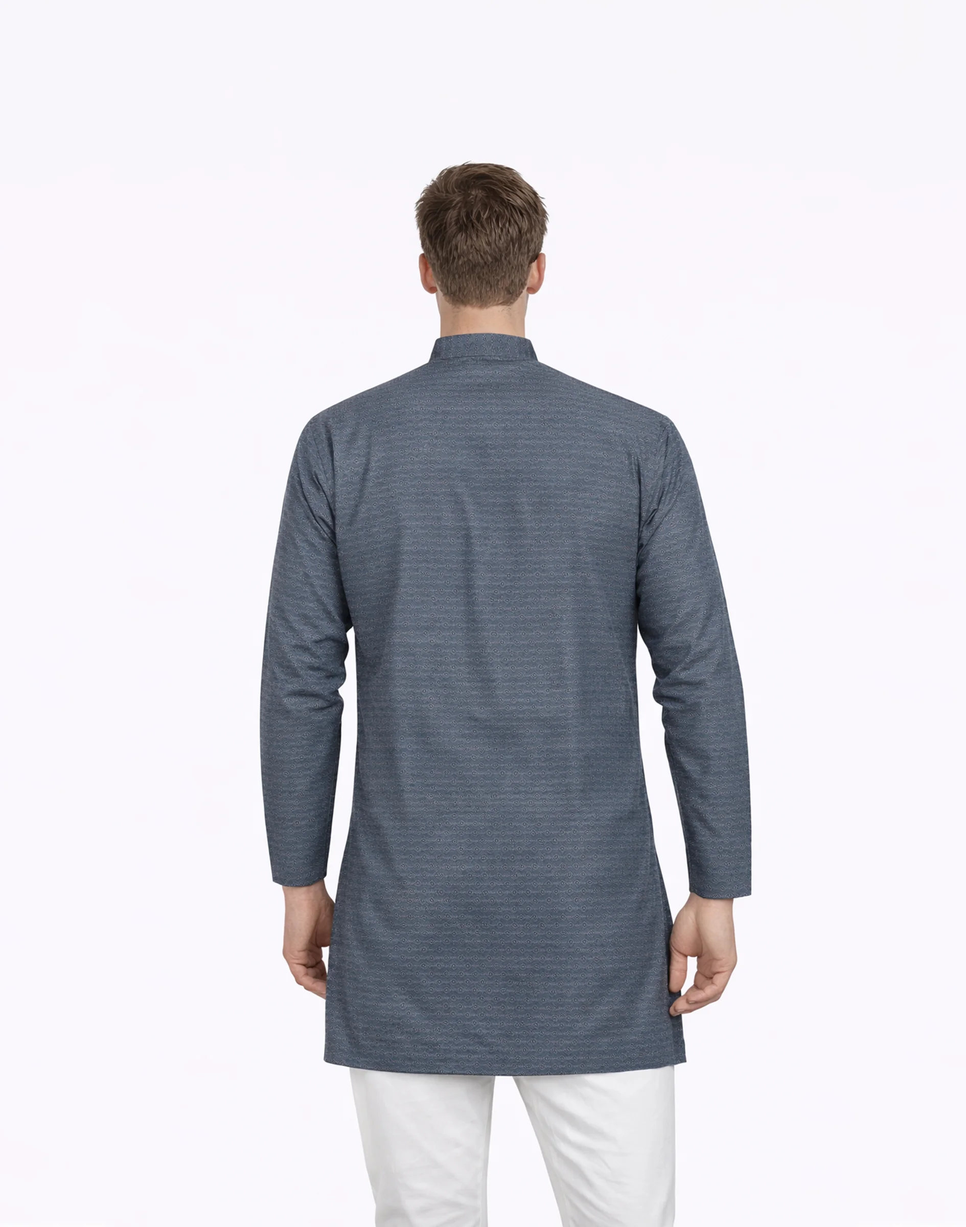 A modern essential in slate grey, this brocade kurta features a finely woven texture with a subtle sheen, offering understated elegance for refined occasions.