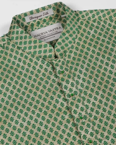 Maurya Vastra Green Self-Design Brocade Designer Silk Kurta
