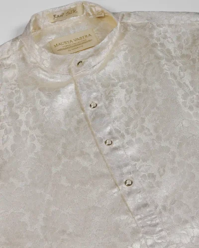 Maurya Vastra Ivory Floral Self-Design Raw Silk Kurta
