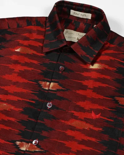 Maurya Vastra Red & Black Ikat Pattern Designer Silk Shirt