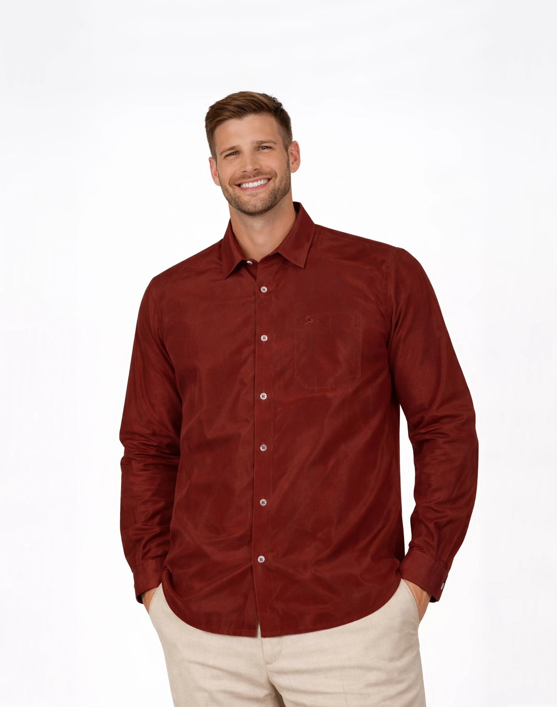 A refined deep maroon silk shirt designed to deliver elegance with a rich, luxurious finish.