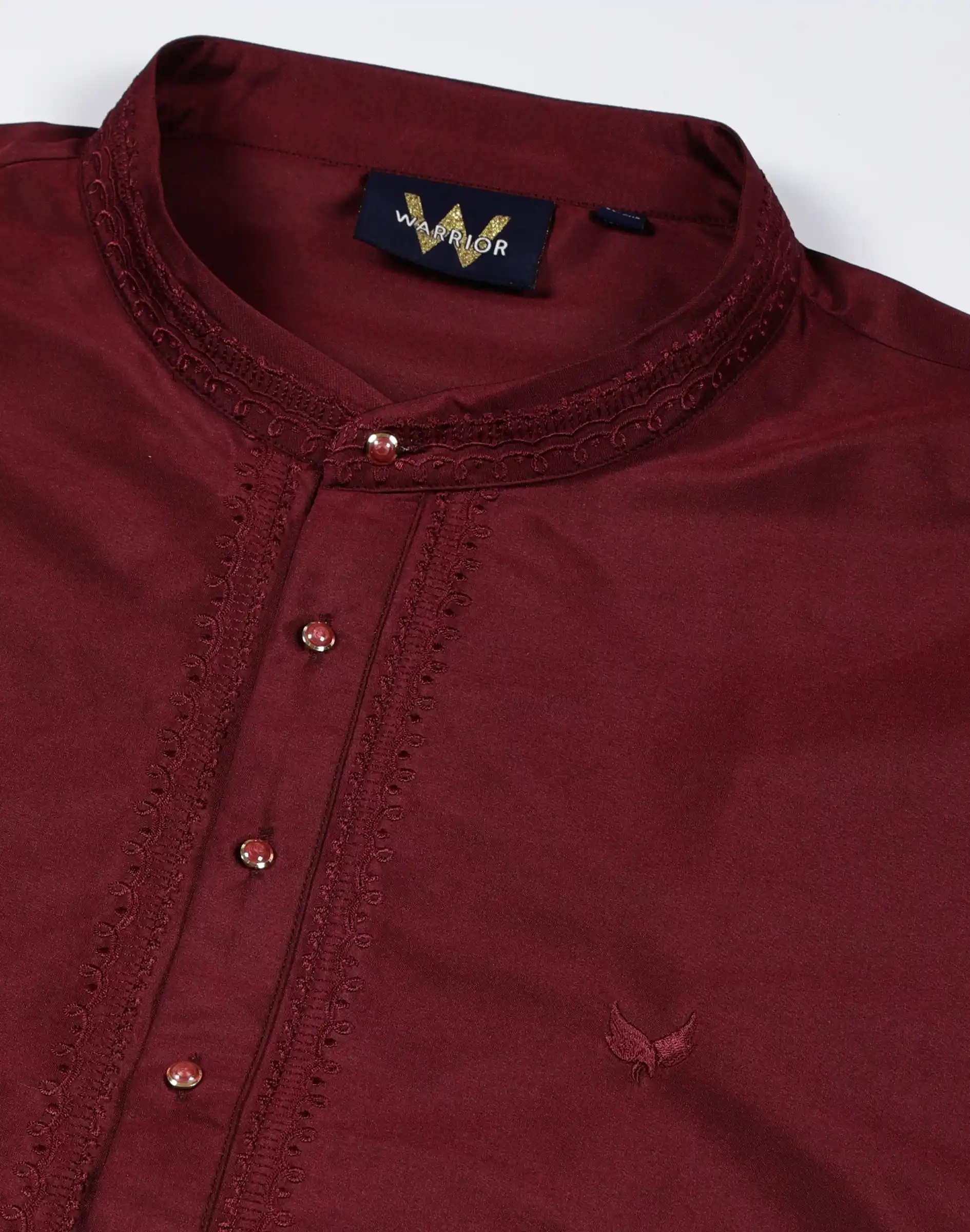 Warrior Deep Maroon Silk Mandarin Collar Kurta