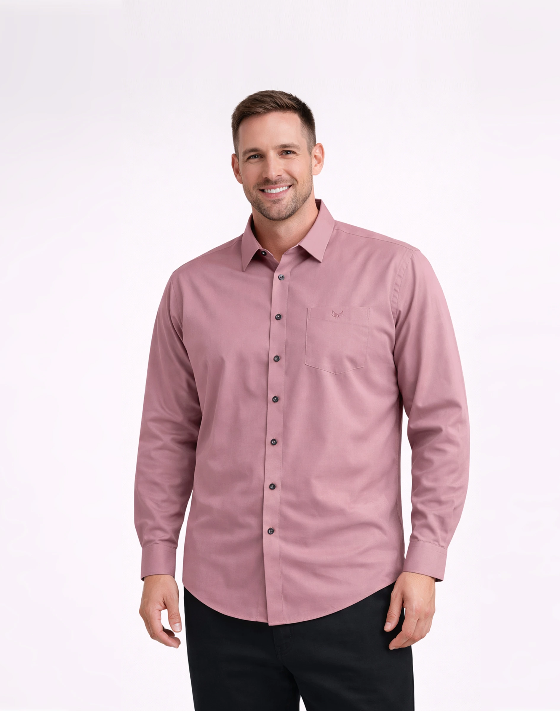 A refined dusty rose formal shirt crafted from premium silk-finish fabric, offering a sophisticated look with a smooth, luxurious feel.