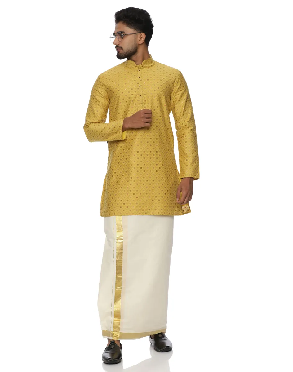 Maurya Vastra Mustard Golden Textured Festive Kurta
