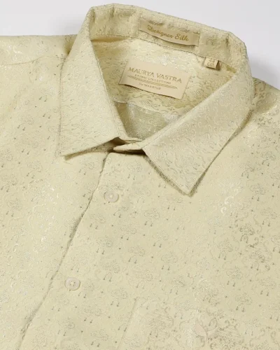 Maurya Vastra Ivory Gold Designer Silk Brocade Shirt