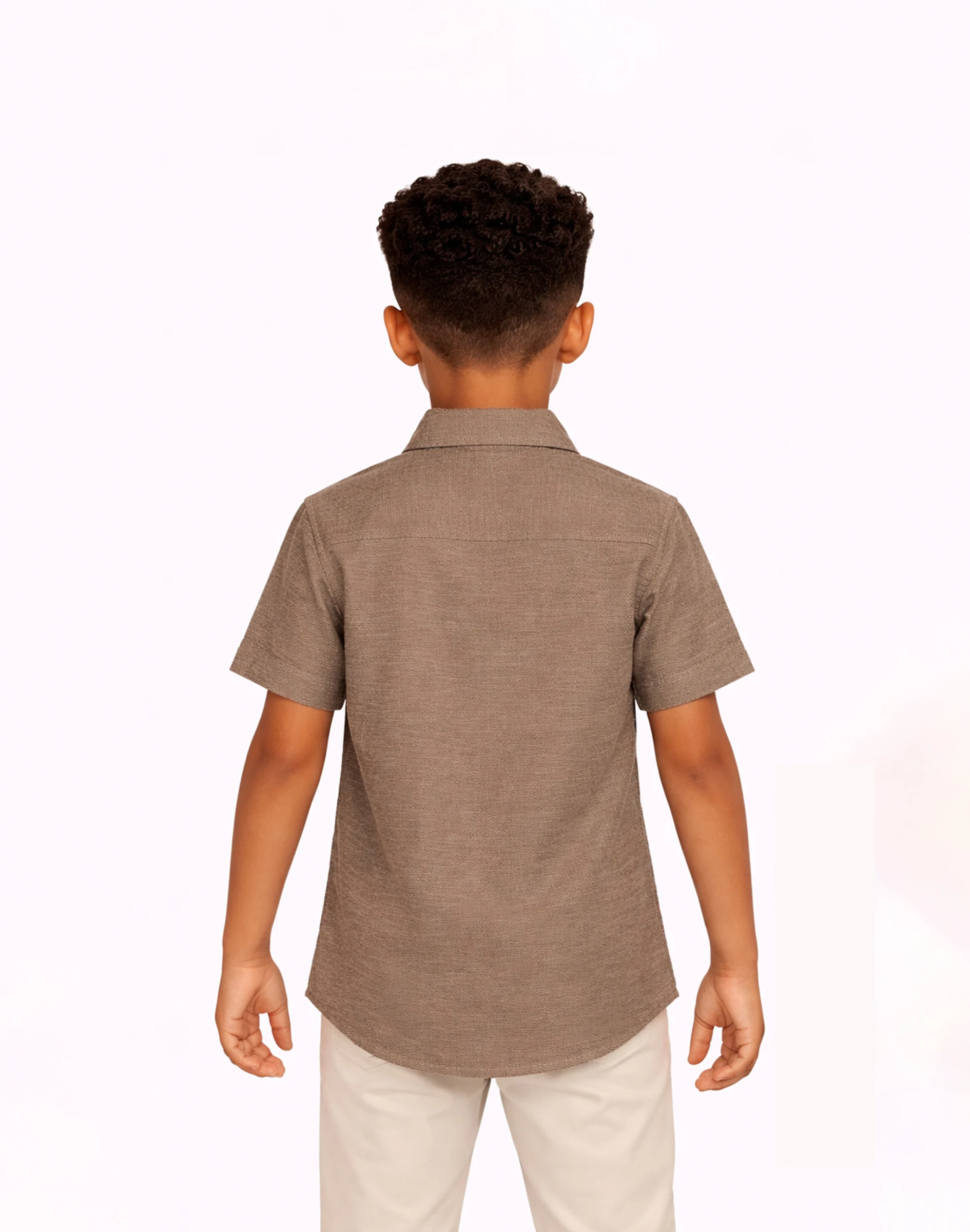 Smart brown shirt for boys with a subtle textured finish—perfect for everyday wear and casual outings.